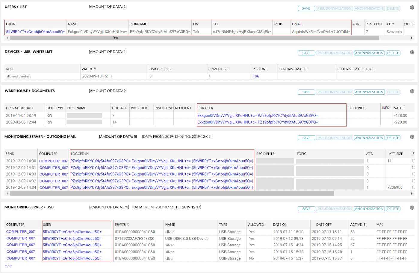 Huge amounts of data are processed in IT systems every day. They concern private personal data of users, or information about their activities. When processing and storing such data, software must meet the appropriate requirements and guarantee security in terms of confidentiality. The eAuditor system has both a personal data anonymization and pseudonymization option.